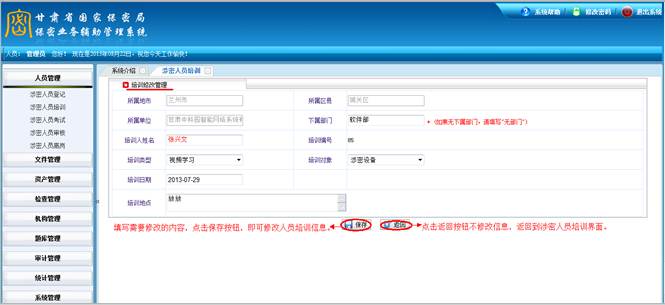 甘肃省国家保密局保密业务辅助管理系统