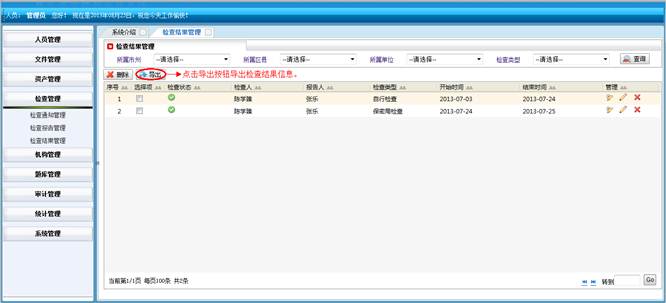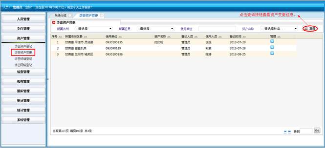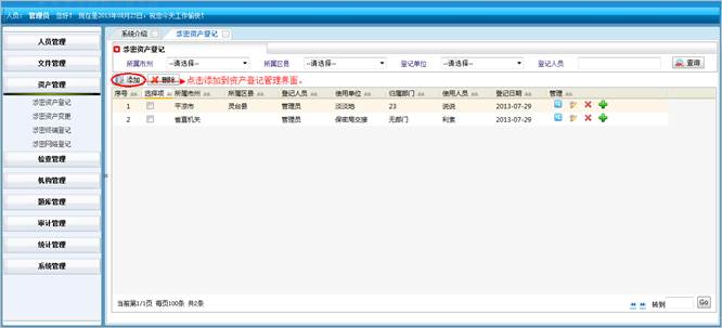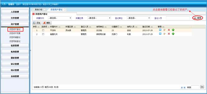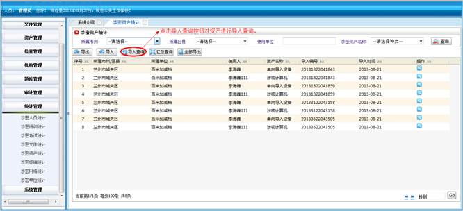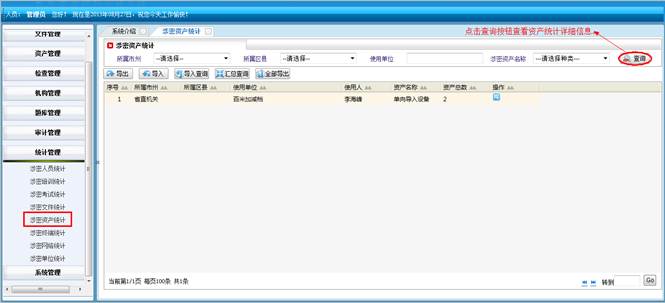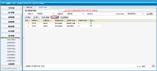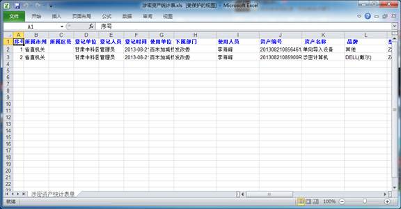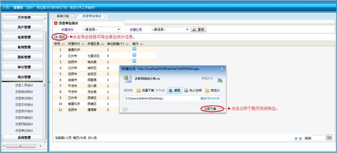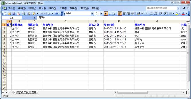 对所属地市和区县的涉密资产进行查询统计。将符合查询条件的信息导成EXCEL表格。
