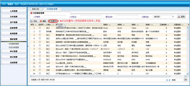 在涉密题库管理界面,点击“批量导入”按钮,到涉密题库导入界面。